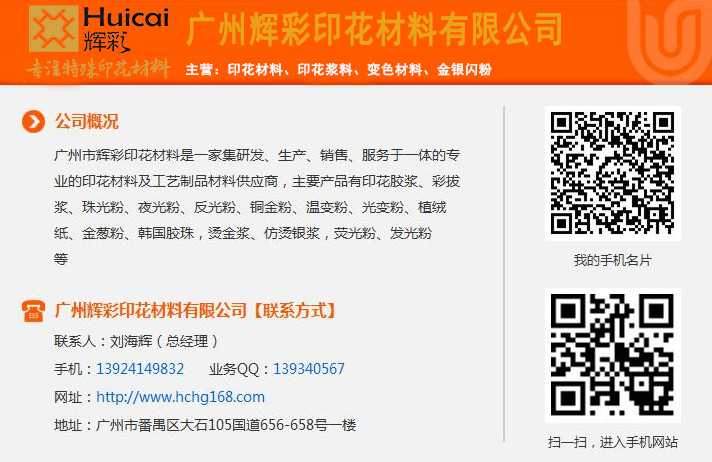 增牢助剂 /多功能助剂 /增稠剂 /粘网胶 /固色剂 /丝印油墨 /印花辅料 /防塞网剂 /A+B硬膜剂 /油性台板胶 /洗水助剂 /更多+发光变色颜料 >>