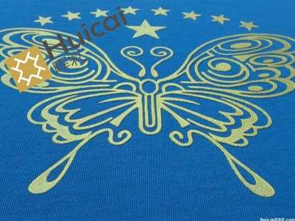 仿烫金/银浆印花具有传统烫金印花无法比拟的优越性,必将得到越来越广泛的应用,为服装印花又添加了一道鲜艳亮丽的风景。
