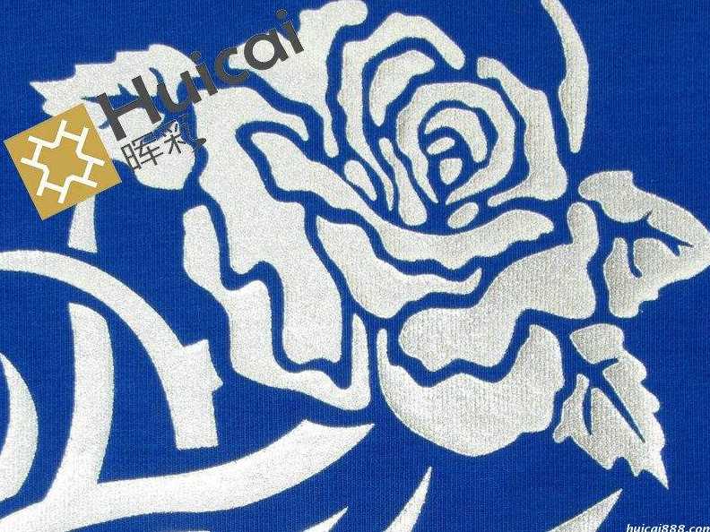 另外一个原因是仿烫银浆的弹性比烫金箔好,辉彩弹性仿烫银浆印花后的洗水牢度大大优越于烫金浆转烫金箔印花,所以仿烫银浆比烫银浆优势更大。