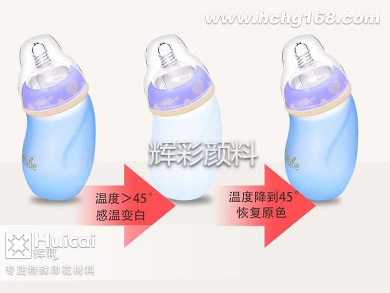 除了颜值的提升外,智能感温奶瓶的另一大特色就是智能感温了,这种智能感温奶瓶就是可以感受温度的变化,根据温度的不同而产生不同的颜色变化,让喂养更加安全。这种奶瓶在生产的时候主要是添加了感温变色颜料,感温变色颜料是包覆着感温色素的微胶囊产品。感温变色微胶囊在加热时,其内部物质结构发生改变从而失色,当冷却时,微胶囊内部 物质恢复原结构从而恢复原色。感温变色微胶囊的颜色种类很多,而且变色的温度范围也可以调控,如水温45度,瓶身发生颜色变化。